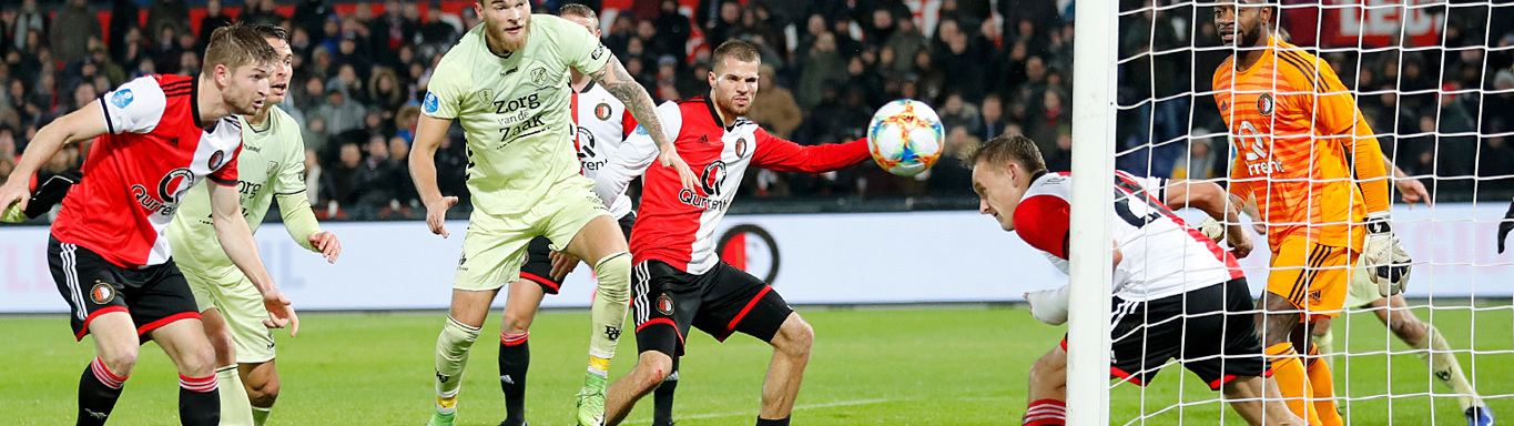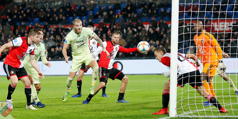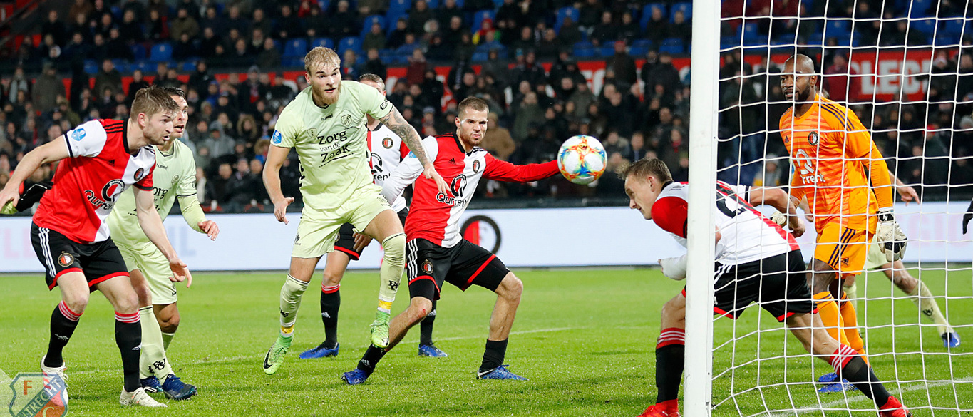 Aan de andere kant van het veld, in de buurt van doelman David Jensen, is het van meet af aan een stuk drukker. Het is mede aan de Deense goalie van FC Utrecht te danken dat het nog lang spannend blijft in Rotterdam. Jensen houdt zijn team met enkele prachtige reflexen en sierlijke saves op de been. Drie keer kan Jensen er niet bij. Twee keer ziet de sluitpost dan tot zijn grote vreugde dat hij bijval krijgt van het aluminium; een schot van Sam Larsson eindigt op de lat en invaller Luis Sinisterra jaagt de bal tegen de paal. Maar een inzet van Tonny Vilhena is de Deen te machtig. Na een klein half uur spelen kopt de international van dichtbij tegen de Deen, die in tweede instantie wordt gepasseerd: 1-0.