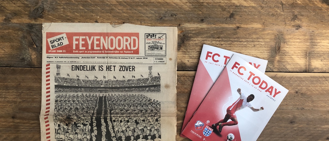 Geschreven voetbalcultuur is het: een programmaboekje. Voor bijna alle officiële wedstrijden die FC Utrecht speelde, werd zo’n magazine uitgegeven. Vandaag, in aanloop naar Feyenoord - FC Utrecht, een blik in de Feyenoord van woensdag 19 augustus 1970. Die dag speelde FC Utrecht voor het eerst in de clubgeschiedenis een wedstrijd in de Eredivisie.