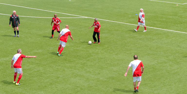 Natuurlijk ging het er tijdens de wedstrijden fanatiek aan toe. Maar het was niet winnen waar het om draaide, afgelopen week donderdag op Sportcomplex Zoudenbalch. Tijdens het DOM Toernooi, een groot Walking Football-toernooi, voerden respect en gezelligheid de boventoon. En waanden de deelnemende OldStars zich voor even echte profs.