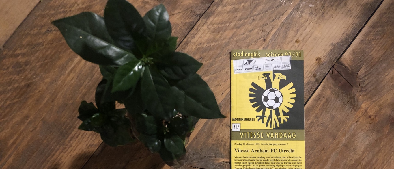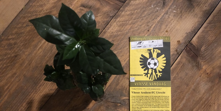 De oefenmeester van Vitesse heeft in 1990 zijn eigen rubriek in het programmaboekje. Bert’s Beschouwing, heet die kolom. De trainer deelt er zijn visie op de recente ontwikkelingen. ‘De eerstvolgende wedstrijd is altijd de belangrijkste en vandaag is dat dus tegen FC Utrecht’, stelt Jacobs. ‘Ik hoop dat mijn spelers voldoende bij de les zijn om er weer een goede wedstrijd van te maken. Daar vertrouw ik eigenlijk gewoon op. Het zijn allemaal profs die weten dat ze niet kunnen teren op de laatste wedstrijd’, is Jacobs duidelijk.
