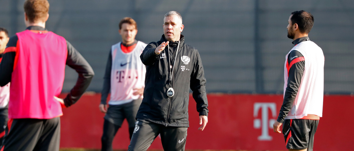 “Ja, dat is wel even omschakelen.” Dat zijn de woorden van René Hake op de vraag hoe het voor hem is om hier nu te staan. “Dit is iets waar ik een dag geleden nog geen rekening mee had gehouden.” De 48-jarige oefenmeester stond vandaag voor een relatief nieuwe spelersgroep. “Dat is altijd spannend. Natuurlijk ken je al heel veel jongens omdat je al lang in het betaald voetbal werkzaam bent. Veel jongens hebben al een keer tegen me gespeeld, kan me even niet zo snel herinneren of ik ook met één van de jongens heb samengewerkt. Je bent in ieder geval geen onbekende voor ze, alleen toch is het wel weer nieuw. Dat geldt voor hun, omdat ik in een andere rol bij hen kom nu, maar dat geldt ook voor mij. Het is altijd even weer een nieuw moment, maar wel een leuk moment.”