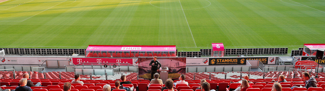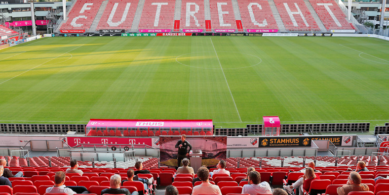 Manager Academie Jelle Goes heette de vertegenwoordigers van de dertig aanwezige clubs – het netwerk bestaat uit ruim tachtig clubs, maar vanwege coronamaatregelen moest de kick-off worden gehouden in een kleinere kring – welkom op de hoofdtribune van Stadion Galgenwaard.