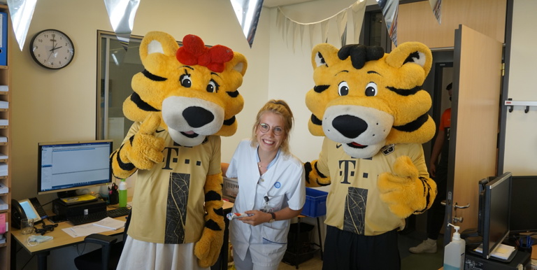 Op elke afdeling kwamen Tiger en Tigergirl langs om iedereen te voorzien van een lekker FC Utrecht-ijsje. Da’s smullen met een goed gevoel, want het ijsje bevat namelijk geen kleurstoffen en ook geen toegevoegde suikers. Dat maakt de ijskoude snack tot een verantwoorde lekkernij.