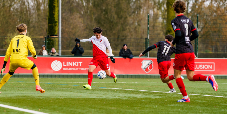 De tweede helft begon met een zonnetje en Julien en Rutger kwamen binnen de lijnen. De 47ste minuut de eerste kans voor FC Utrecht O16 maar de bal ging langs de goal. De 56ste minuut werd Driss neergelegd en daardoor kreeg een speler van Excelsior O16 een rode kaart. Het ontbrak ons om een goede eindpass te geven om de wedstrijd te beslissen, in de 63 minuut werd een doelpunt afgekeurd wegens buitenspel. Excelsior O16 vocht nog tegen degradatie dus zij zetten een tandje bij met 10 man. Tegen het eind van de wedstrijd ging het dan nog goed fout voor ons, in de 76 minuut kwam Excelsior O16 op 1-1 en door goed druk te blijven zetten kwamen zij in blessuretijd zelfs nog op 1-2.