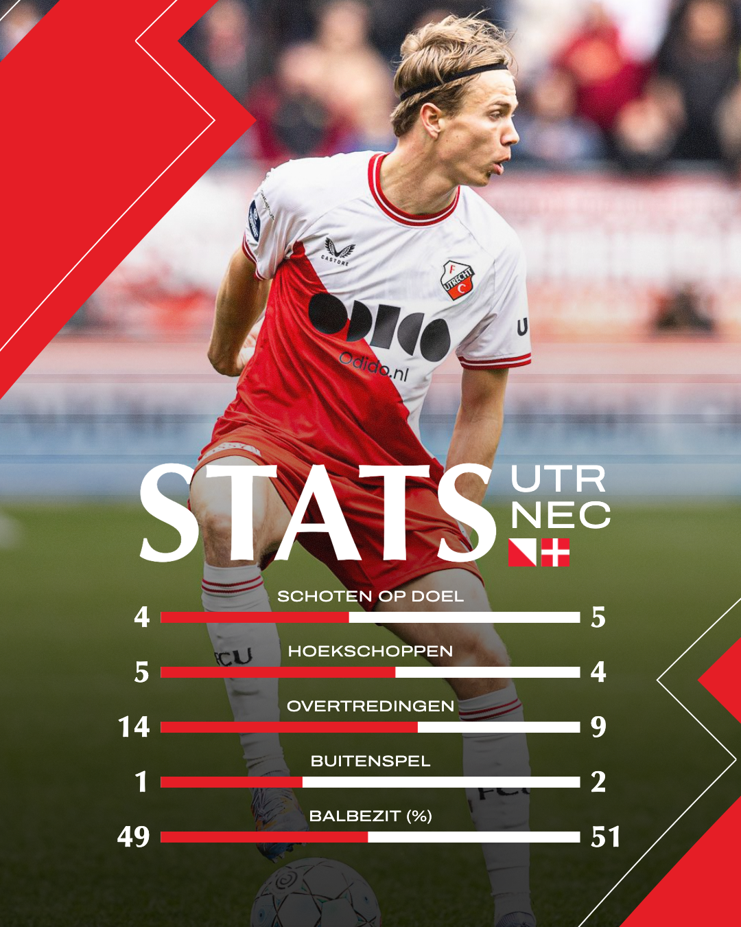 Eén doelpunt was vanmiddag genoeg voor de zege. Dit zijn enkele andere getallen die horen bij FC Utrecht - NEC, editie 2023/2024:
