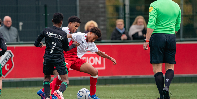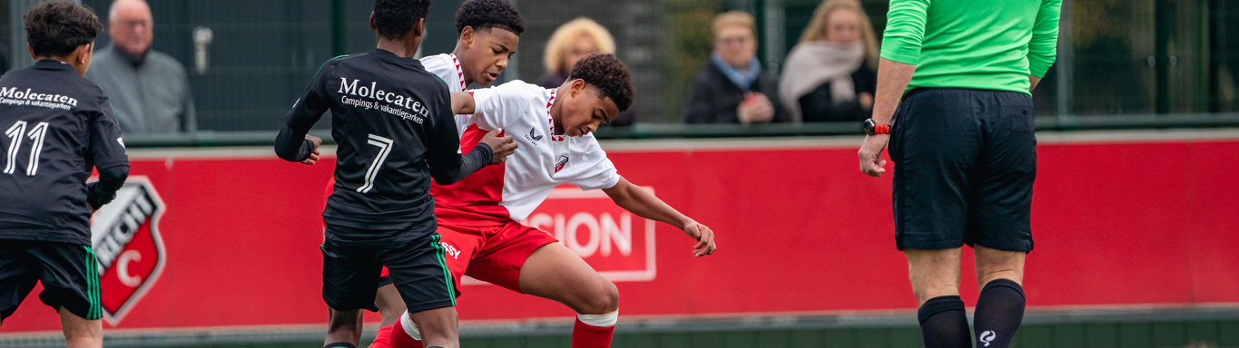 FC Utrecht O14 won vandaag met 2-1 van de onder 14 van PEC Zwolle. Na een 1-0 voorsprong voor rust werd het pas in de eindfase weer spannend doordat vlak voor tijd de gelijkmaker van PEC Zwolle viel. Twee minuten in de blessuretijd trokken de jongens uit Utrecht toch aan het langste eind.